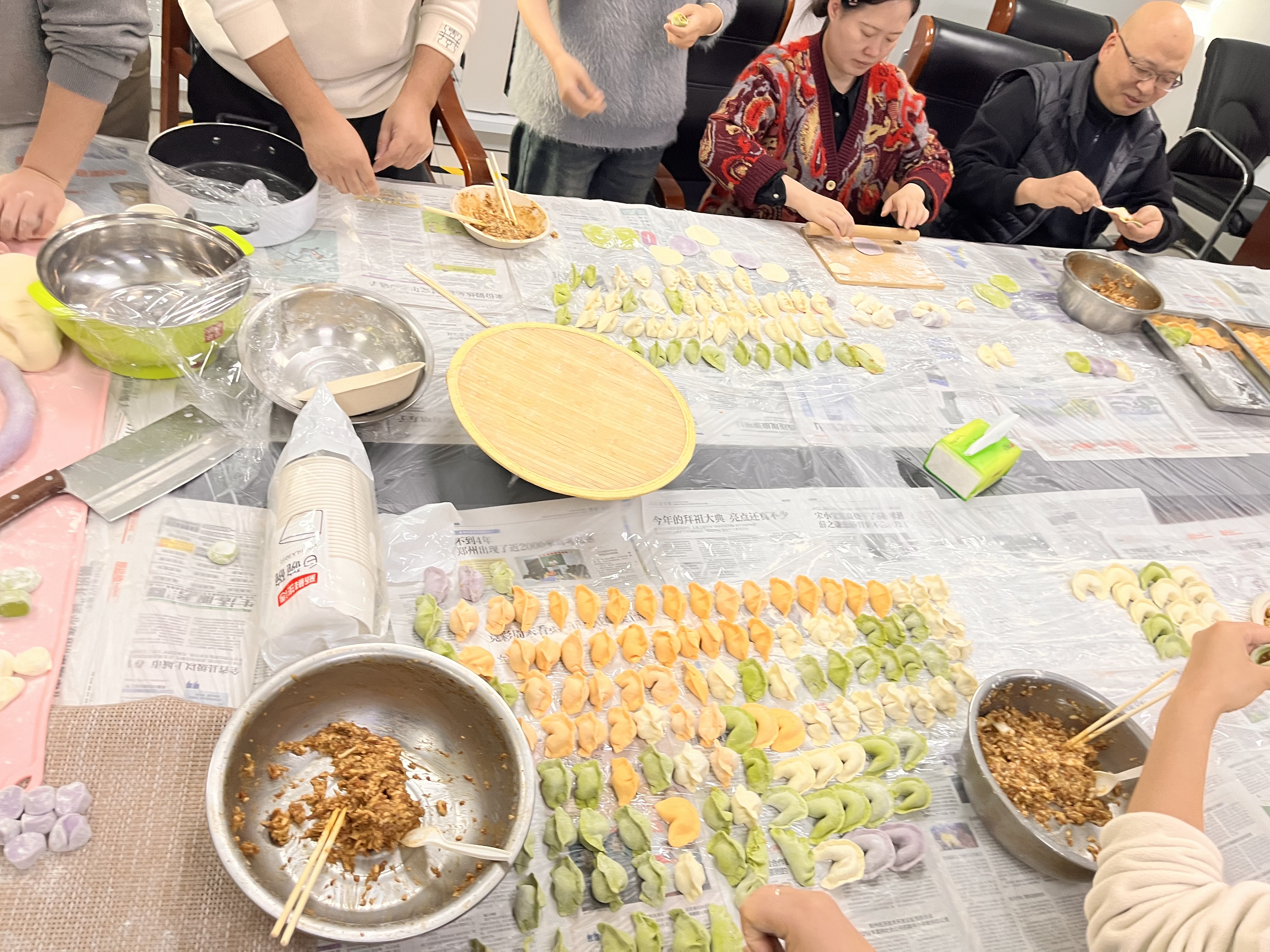 活動當(dāng)天,公司的會議室搖身一變,成為了一個溫馨的“餃子工坊”。同事們圍坐一圈,桌上擺滿了面團(tuán)、餡料和各式各樣的包餃子模具。隨著一聲令下,大家紛紛卷起袖管,投入到熱火朝天的包餃子大軍中。有的同事手法嫻熟,包出的餃子形狀各異;有的動作略顯笨拙,但在同事們 的鼓勵和幫助下,也漸漸找到了感覺,包出了自己滿意的作品。