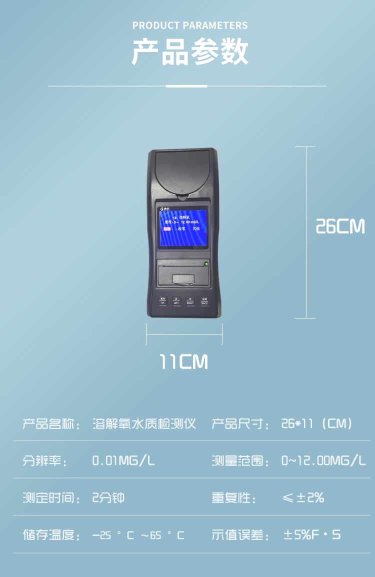 | 1 | 溶解氧 | 0~12.00mg/L | Ⅰ、Ⅱ、Ⅲ | 0.01mg/L |